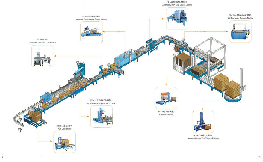適用於食品、醫藥、五金等行業紙箱打包,木箱打包,紙張(zhāng)打包等各種大小(xiǎo)貨物的自動打包(bāo)捆紮